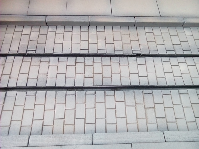 Encolamos la segunda línea, procurando alternar las juntas de los adoquines.