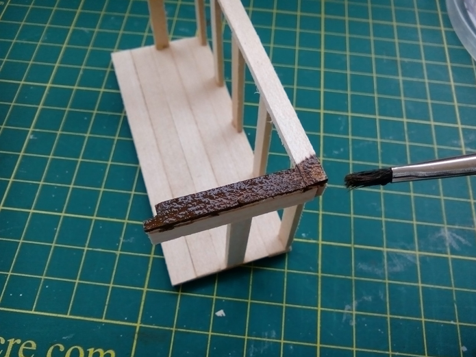 Para pintar el balcón usaremos la pintura de color marrón chocolate de Vallejo, referencia 70.872.