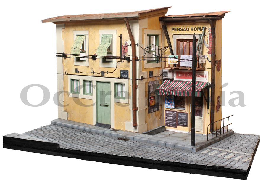 Te brindamos la oportunidad de aprender juntos el arte de las escenas, de los dioramas, de crear ambientes espectaculares. Para estrenar esta línea de dioramas, queremos montar la primera escena situada en pleno centro histórico de Lisboa (Portugal). La Rua das Escolas Gerais. Una calle empedrada y estrecha. Detalles cotidianos. Típico ambiente atlántico. Luz. Calidez. Tardes tranquilas. Calma.